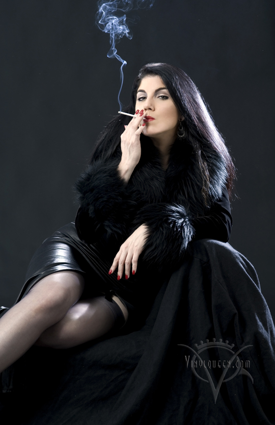 Fur-trimmed Velvet Top with 120 mm Cigarette.